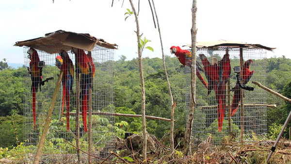 Guatemala poprvé vypustila v zajetí odchované ary arakangy do volné přírody