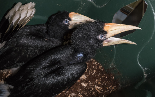 UVNITŘ FOTO A VIDEO – Celkem 13 mláďat vzácných zoborožců nosorožčích se již podařilo odchovat pražské zoologické zahradě. To je nejvíc z celé Evropy. Letos přibyla dvě mláďata, která se vylíhla koncem března, ale protože se o ně samice od začátku nechtěla starat, chovatelé pražské zoo je dokrmují ručně. „Dosud nejzkušenější samice v evropských chovech – pražská Markéta, tentokrát z nějakého důvodu opustila vejce již v době líhnutí prvního z mláďat. Chovatelé proto malé zoborožce přemístili do líhně a vyrobili speciálního maňáska, s jehož pomocí je dokrmují sami,“ informovala zoo.