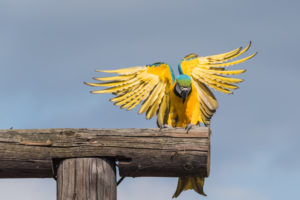 - Přistávající ara ararauna (Foto: Pavel Kovalančík)