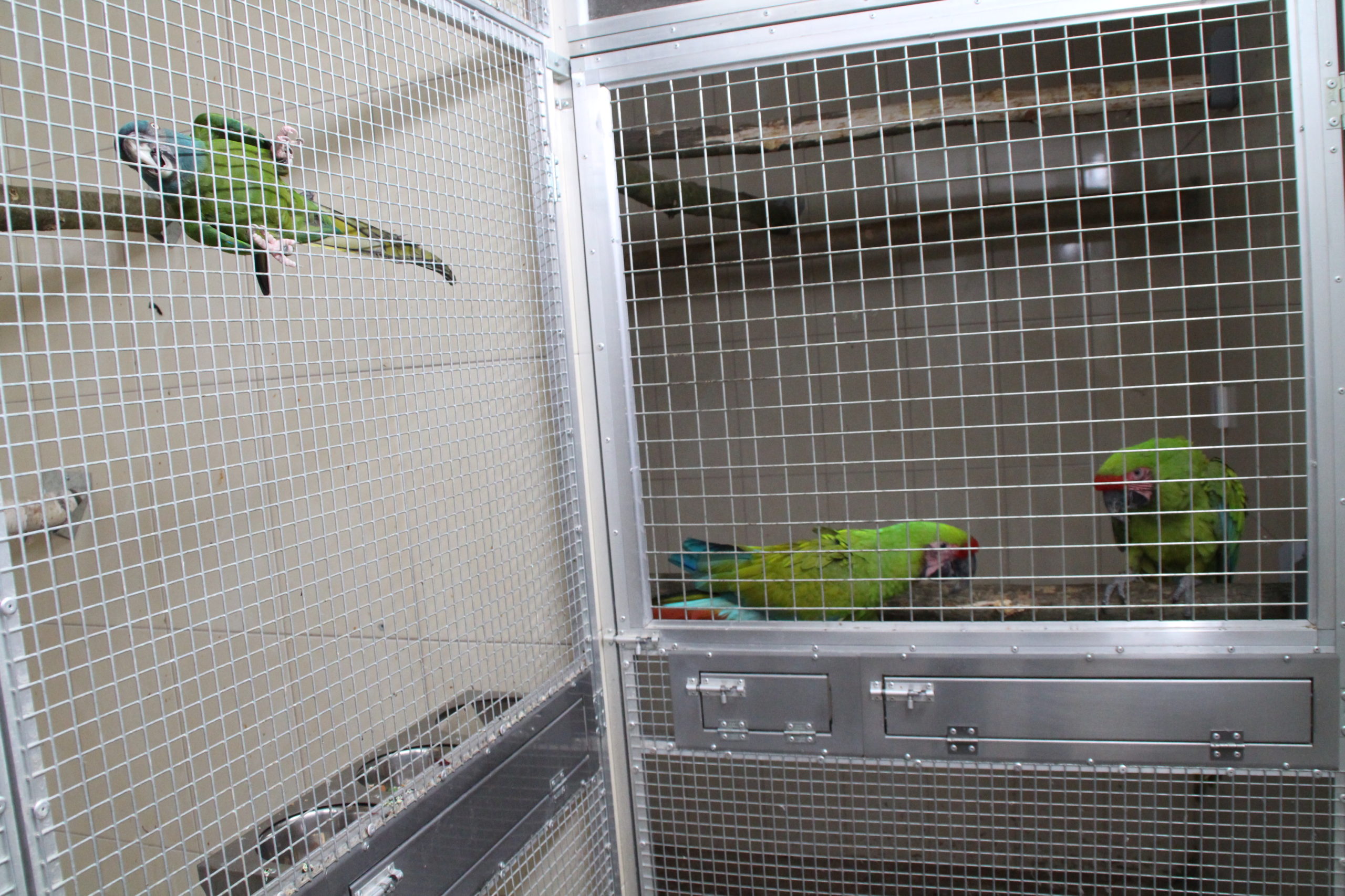 Arové horští v chovném zařízení sousedí s ary zelenými