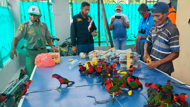 Indonésie opět řeší případ papoušků pašovaných v plastových lahvích. Tentokrát jde o lorie