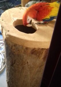 prakticky ihned po dovezení papoušci začali budku prozkoumávat (1)