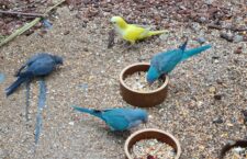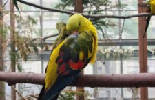 Mníškům dělají po levé straně společnost alexandři malí různých mutací. Tuto skupinu už mohli návštěvníci výstav v Botanické zahradě vidět v minulosti a je opravdu nádherná. Z Jižní Ameriky a Asie se hned ve třetí voliéře přesouváme do Austrálie s třemi zástupci středně velkých až velkých papoušků – královského, kouřového (horského) a nádherného. A zase zpět do Jižní Ameriky, k zástupcům malých tukanů. Na výstavě totiž nechybí ani arassariové zelení a vedle nich malí zoborožci – kdysi v podstatě běžněji chovaní tokové rudozobí, kteří se dnes těžce shání, jak si při nedávné návštěvě ZO ČSCH Exotáři Východní Čechy v Českém Rudolci postěžoval největší specialista na zoborožce u nás Čestmír Drozdek. Z arů na výstavě nejsou jen běžné druhy, k vidění je i pár arů horských.