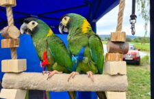 Ale dost naříkání nad časy dávno minulými. Kdo chtěl, ten si užil i letošní kulatý ročník, na kterém byli k vidění hned tři arové hyacintoví, několik arů zelenokřídlých, samozřejmě nejvíce bylo araraun, ale nechyběli ani kakaduové bílí a růžoví a volně létající aratingy sluneční, žakové, amazoňani modročelí a oranžovokřídlí a další papoušci (plný výčet 26 přítomných druhů níže). Svůj stánek a několik papoušků zde měla Společnost Laguna, která se stará o nechtěné a opuštěné papouščí domácí mazlíčky, samotná skupina Papoušci v akci, veterinární stánek provozovala MVDr. Veronika Plháková s rodinou, k dostání byla i brusná bidla, suvenýry včetně hrnečků a plecháčků s potisky, triček, plakátů a obrazů (vlastní stánek měl i e-shop Ararauna.cz).