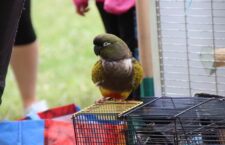Papoušků bylo letos na Krásném opět hodně, i když někteří pravidelní účastníci chyběli z „rodičovských důvodů“. Ano, řada papoušků „volnoletců“ dospěla a začala hnízdit, takže místo srazu seděli na snůškách nebo krmili mladé. Na pestrosti vystavovaných opeřenců se to ale takřka neprojevilo. Co trochu kazilo dojem z tradiční akce, bylo definitivní přemístění srazu do části kempu s karavany, kde dříve bývalo veřejnosti nepřístupné zázemí. Na louce před restaurací, kde se při předchozích ročnících stavěly stromky pro odpočinek papoušků a jejíž okraje byly lemované stánky a zázemím pro ptáky ve stínu, totiž letos bylo povolené stanovat a celá byla posetá menšími stany a zaparkovanými auty „nepapouškářů“.