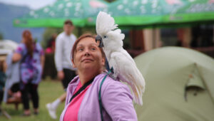UVNITŘ FOTO A VIDEO – Poprvé pod taktovkou východočeské skupiny Papoušci v akci se v sobotu uskutečnil jubilejní desátý ročník Papouščího dne na Krásném u Šumperka. Celostátní sraz vyznavačů volného létání papoušků se prakticky protáhl na několik dní, protože majitelé ochočených opeřenců se do Autokempingu Krásné sjížděli předem a užívali si na místě dovolenou. Pro návštěvníky a laiky byla tradičně určená sobota, kdy sice polevila vlna veder, ale po ranních bouřkách bylo pošmourno, zima a větrno. To se společně s novými pořádky v kempu podepsalo na snížené účasti veřejnosti, jež se pohybovala ve stovkách, možná v jednom tisíci převážně místních obyvatel a lidí z bližšího okolí.