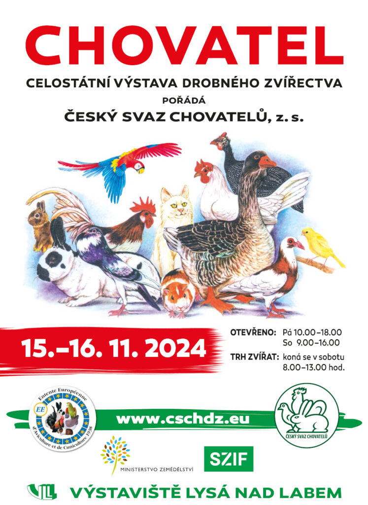 Celostátní výstavu Chovatel pořádá na Výstavišti Lysá nad Labem Český svaz chovatelů. Zahrnovat bude bodované expozice králíků, holubů, drůbeže a morčat, ukázkové expozice exotického ptactva, ušlechtilých koček, doprovodné expozice pro děti a mistrovství České republiky v chovu drobného zvířectva. Otevřeno bude v pátek 15. listopadu od 10:00 do 18:00 hod. a v sobotu 16. listopadu od 9:00 do 16:00 hod. Vstupné dospělí 150 Kč, pro členy ČSCH 120 Kč, děti do 130 cm a mladí členové ČSCH zdarma, děti nad 130 cm 50 Kč. ZTP/P zdarma. Na místě prodej chovatelských potřeb, krmiva a zvířat.